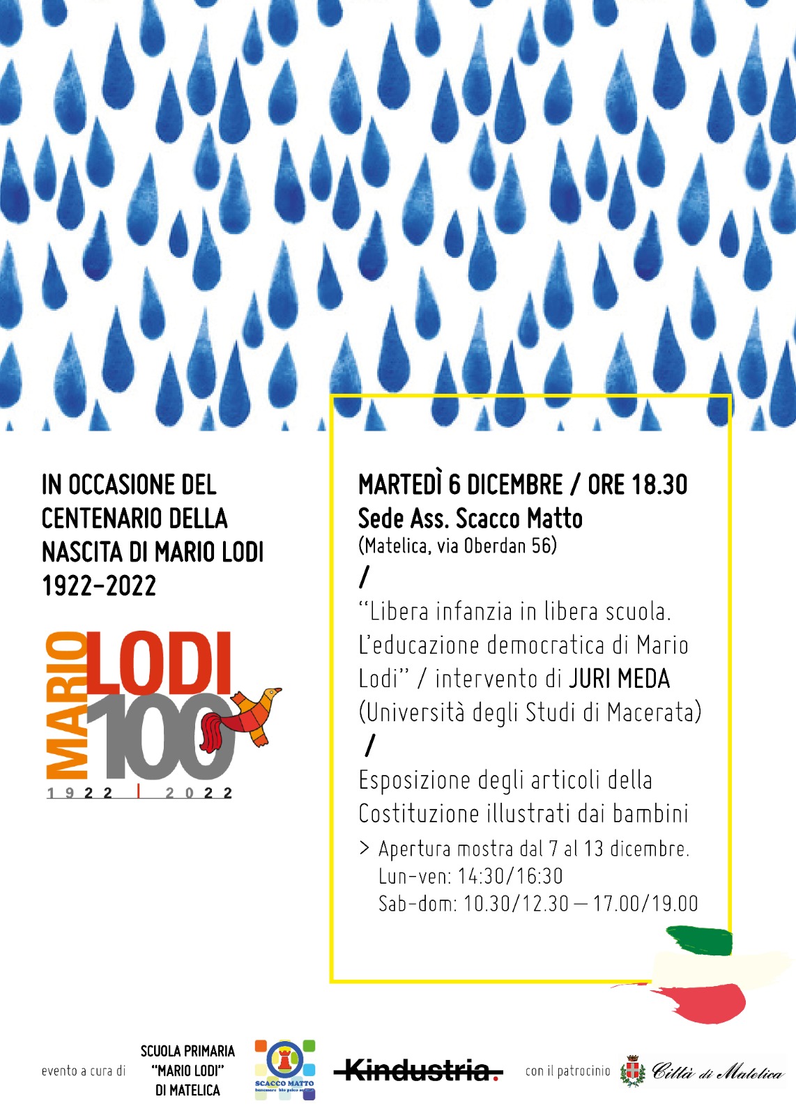 “Libera infanzia in libera scuola. L’educazione democratica di Mario Lodi”, intervento di Juri Meda seguito dall’esposizione degli articoli della Costituzione illustrati dai bambini.